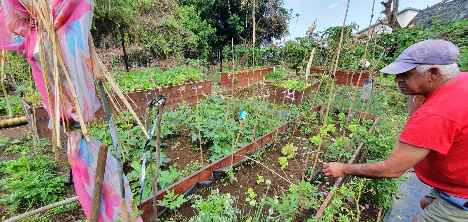 Le jardin partagé de La ravine la fleur comprends 10 jardinières autonome. Elles représentent une surface d’environ de 15 m2 chacune.